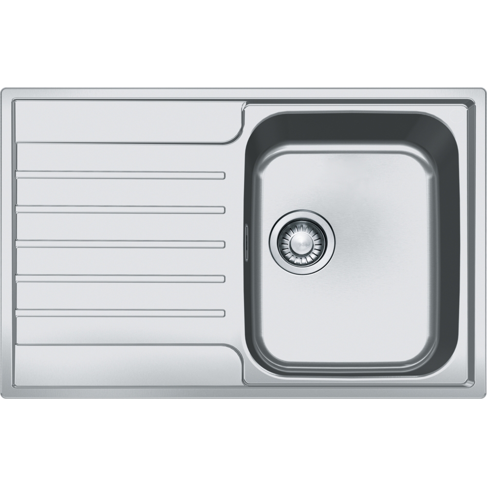 A single bowl inset kitchen sink with reversible drainer in matt brushed stainless steel and 50 Year Guarantee.