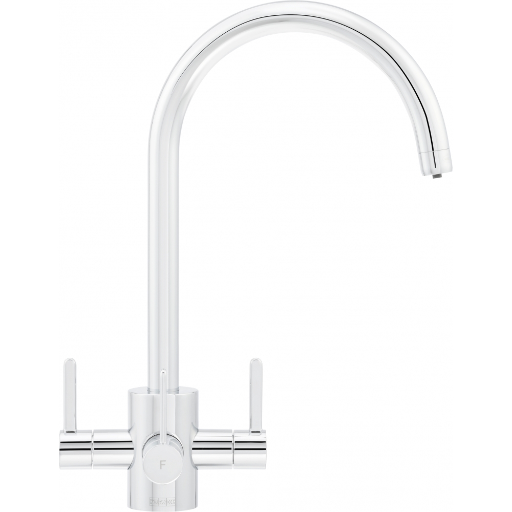 A multifunctional kitchen tap from the Franke Atessa collection delivering hot, cold and filtered drinking water from a single spout, available in Chrome finish.