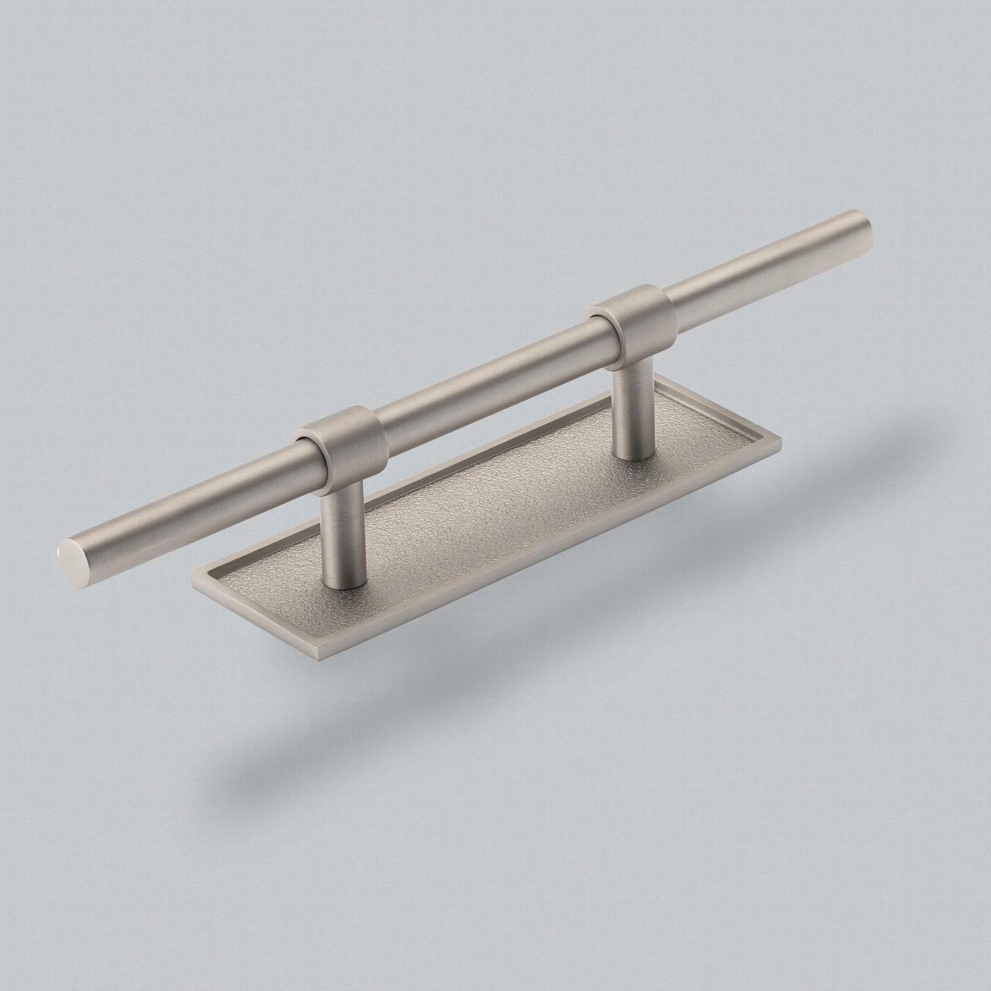 A sculptural cabinet pull handle featuring a bold circular bar paired with a striking shot-blasted backplate, iconic to the Brokk collection’s bold architectural aesthetic. Crafted from high-quality brass with a living finish that ages naturally over time (requiring occasional wax maintenance to retain a lighter tone), it adds a standout artistic accent to cabinetry in kitchens, bedrooms and bathrooms.