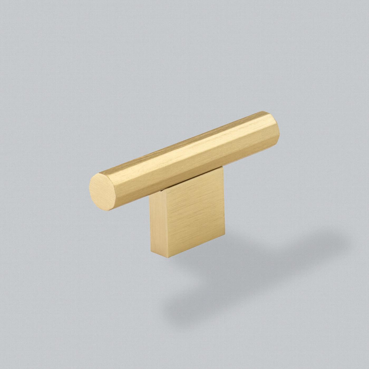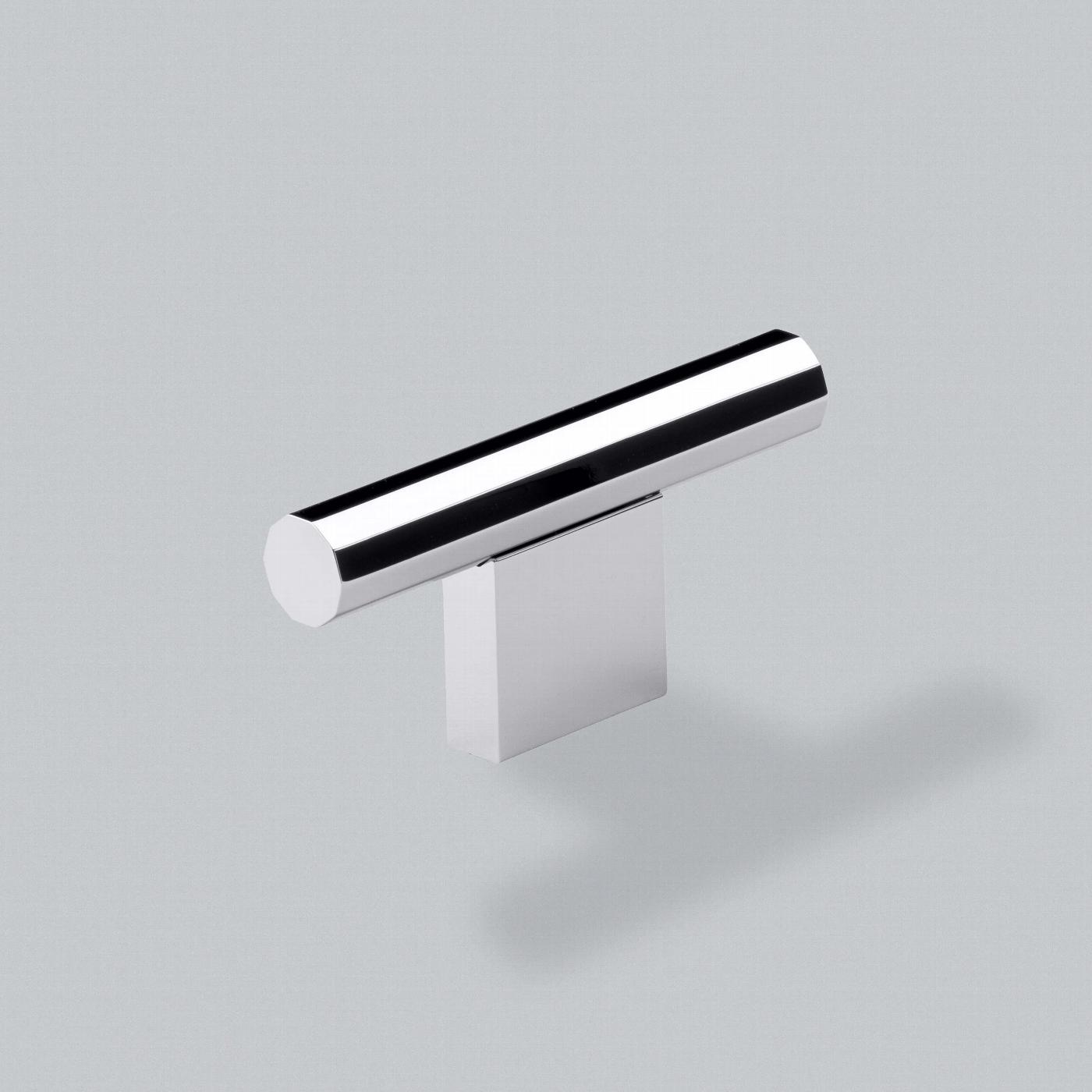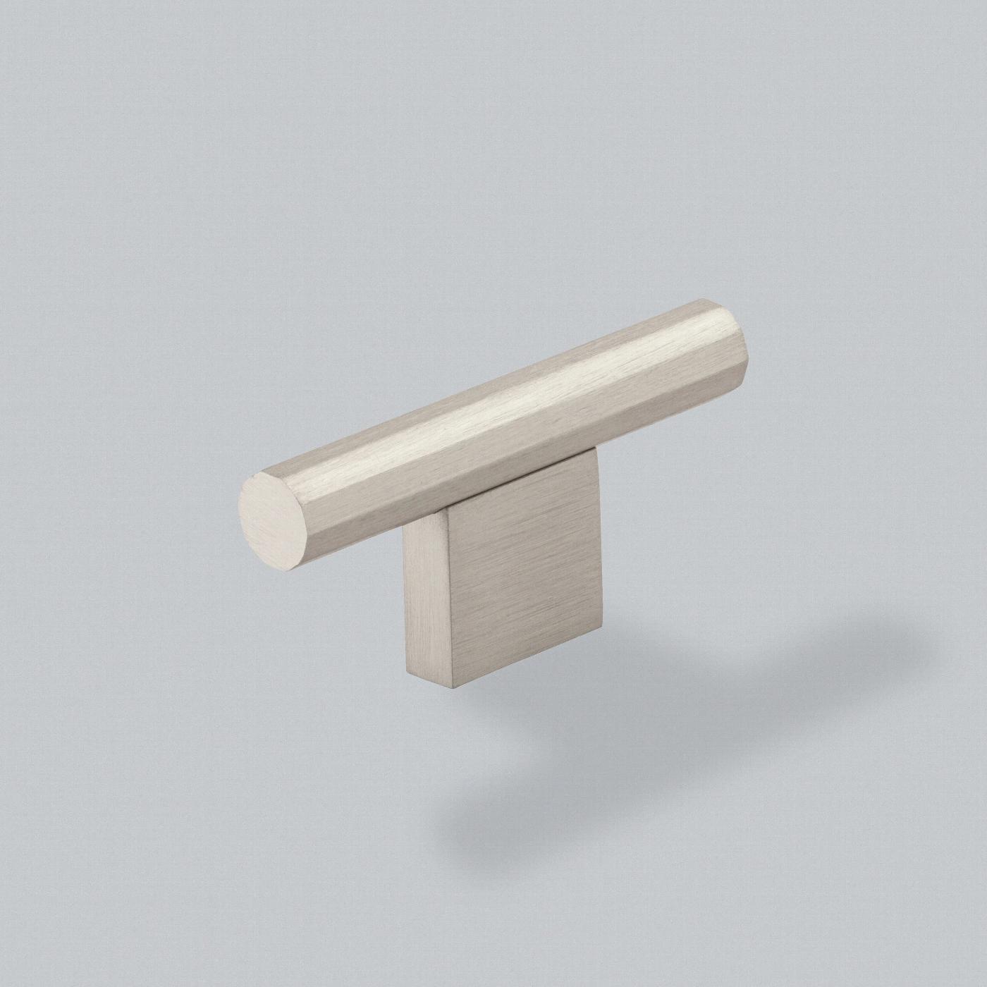 A contemporary cabinet T-bar knob featuring ten symmetrical geometric facets for a modern aesthetic. Its clean lines provide a refined look that pairs seamlessly with other hardware from the Dixton collection and suits a broad range of kitchen, bedroom and bathroom cabinetry.