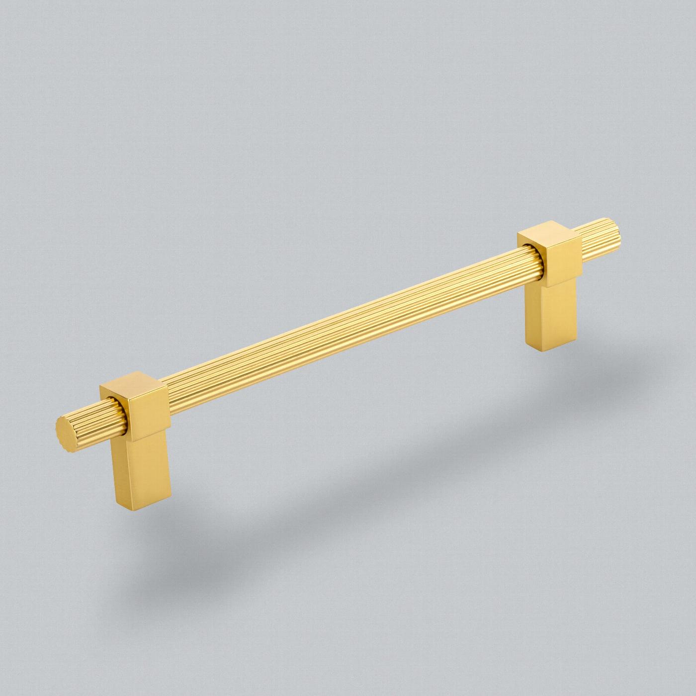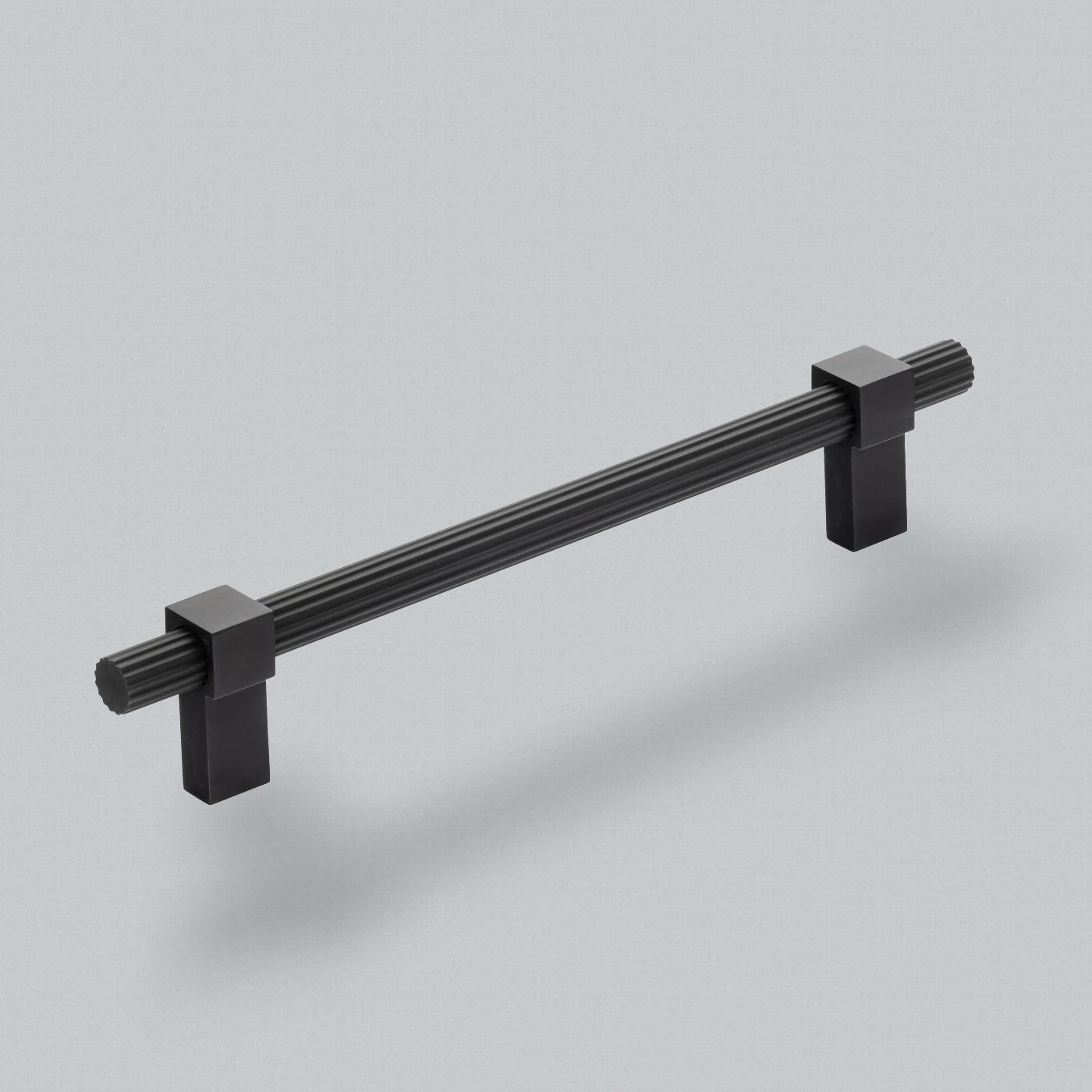 A contemporary cabinet pull handle featuring bold linear groove detailing that adds visual rhythm and tactile grip. This modern design works beautifully on kitchen, bedroom and bathroom cabinetry, pairing seamlessly with other Huxley hardware for a coordinated look.
