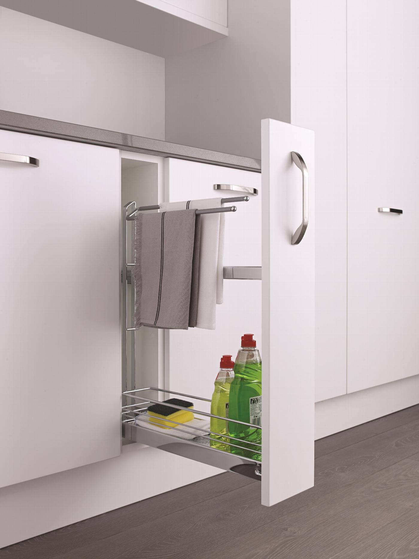 Classic base unit pull-out storage, unhanded, 150mm, chrome finish, with tandem upgrade runner