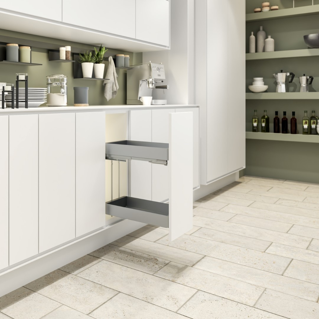 Base unit pull-out storage, unhanded, 300 mm, soft-close, black silver finish