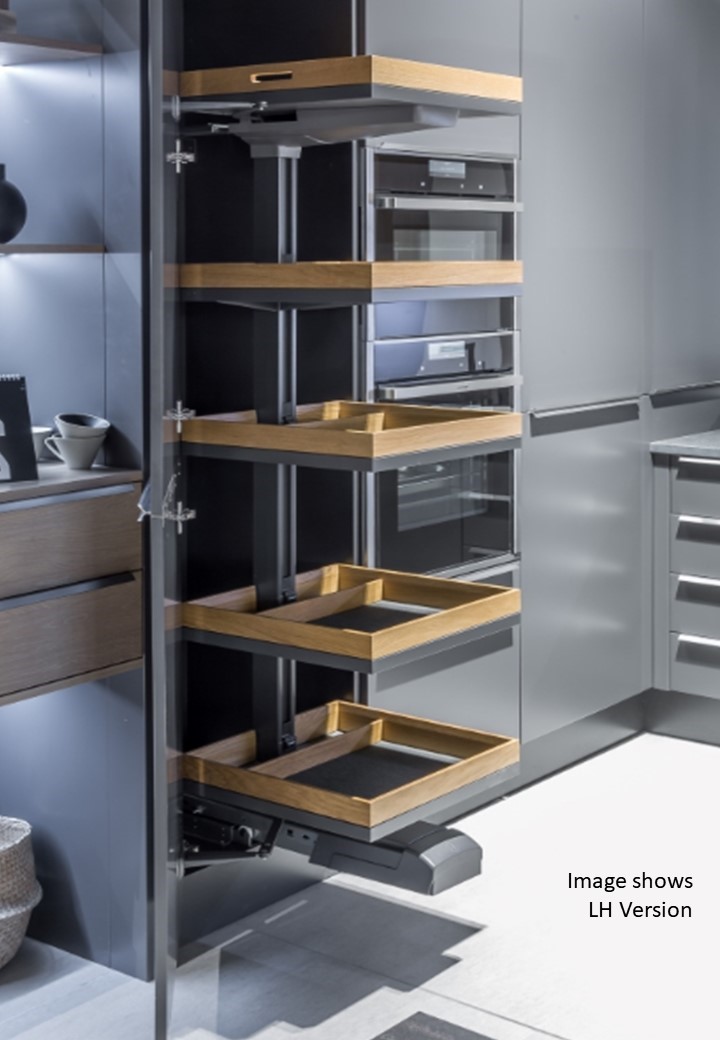 Convoy Premio 600mm larder pull-out unit with timber accessories, left hand