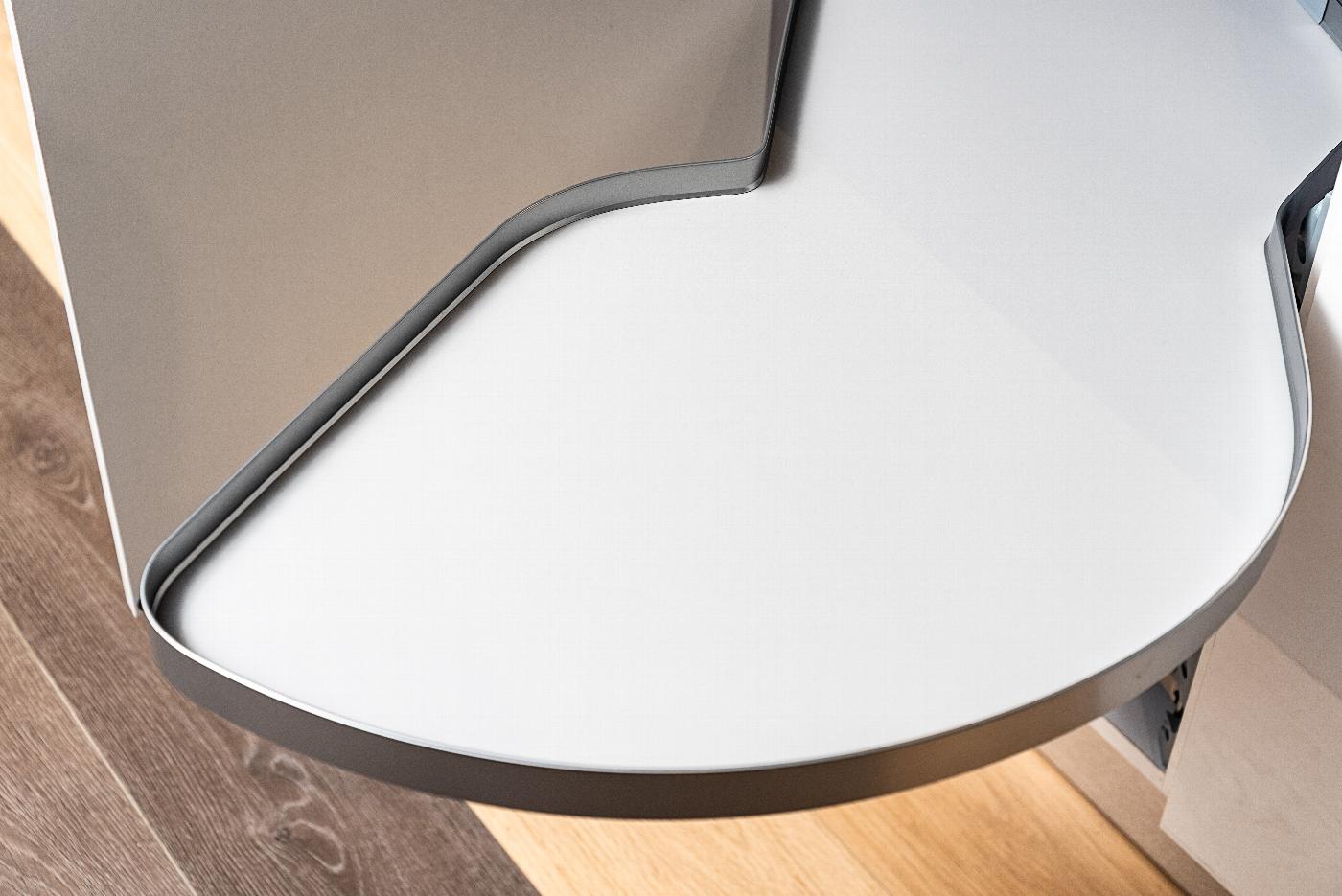 Moveboard 400mm base corner unit, left hand, powder coated silver