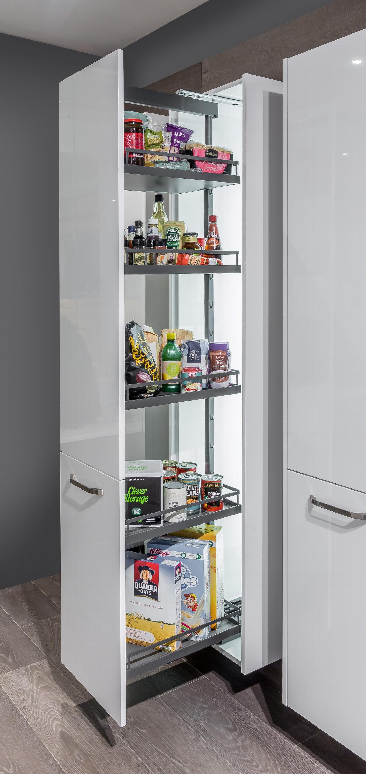Arena Solo Pure 300mm studio height larder unit, 1200–1600mm high, full extension, with soft-stop plus
