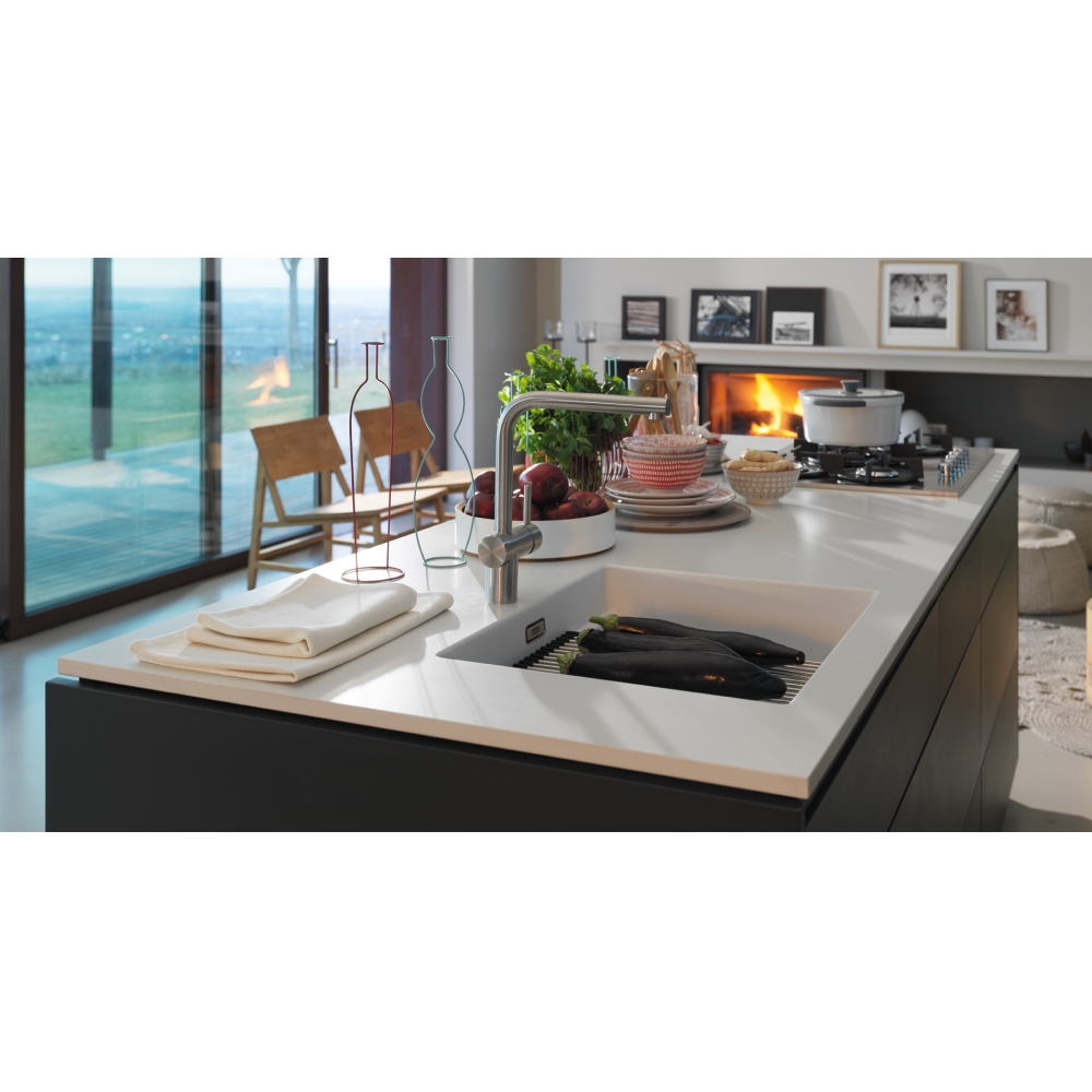 The Kubus KNG 110-52 is a robust undermount kitchen sink made from exceptionally tough Fragranite, resistant to burns, dents, chips and stains. It features one bowl with a 3½″ semi-integrated waste and hygienic overflow, and offers a seamless, integrated look beneath the worktop.