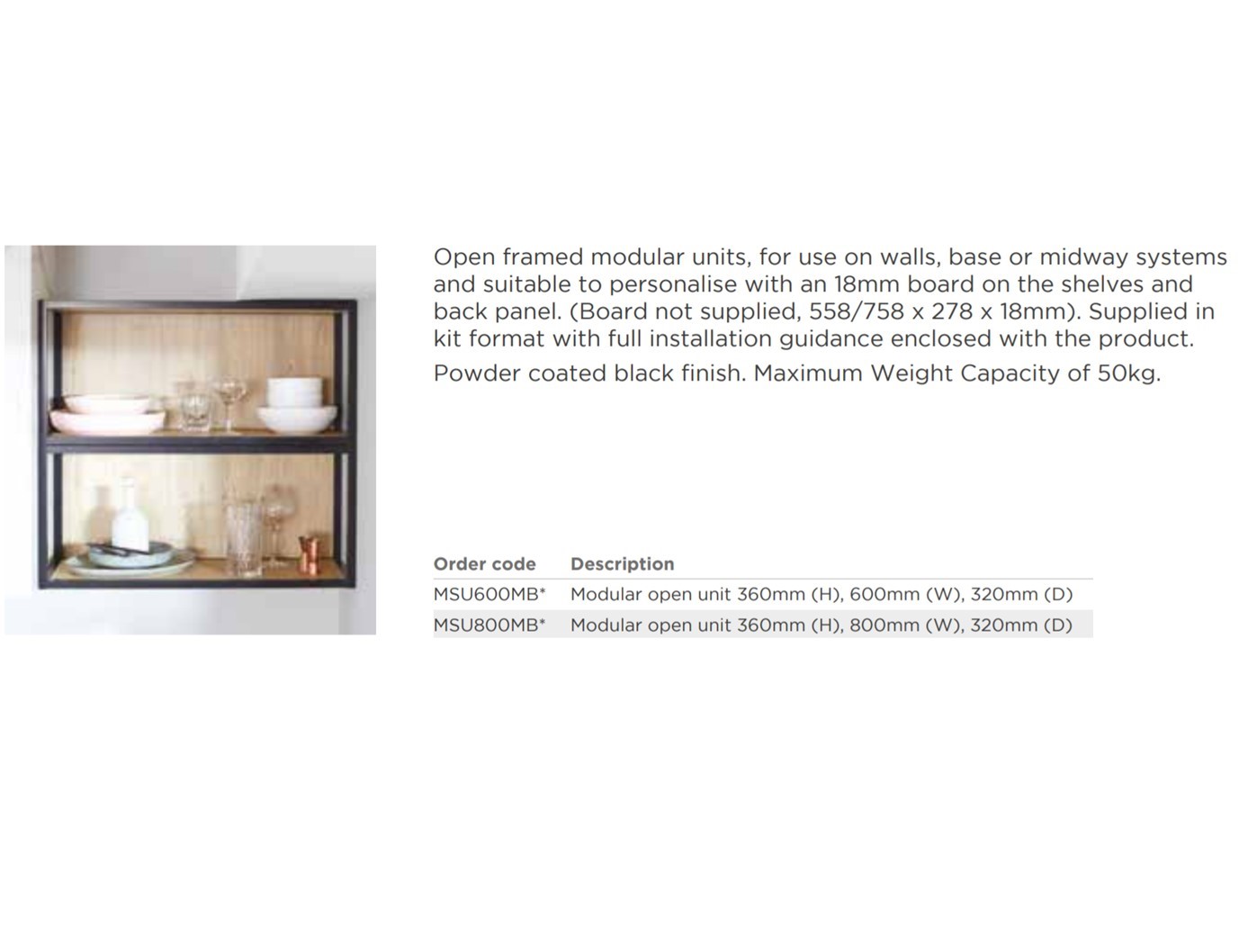 Modular shelving unit (panels not supplied), 600mm, matt black finish
