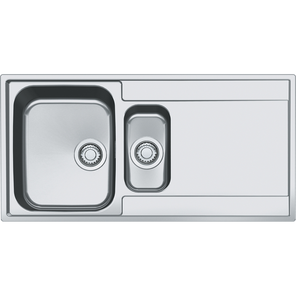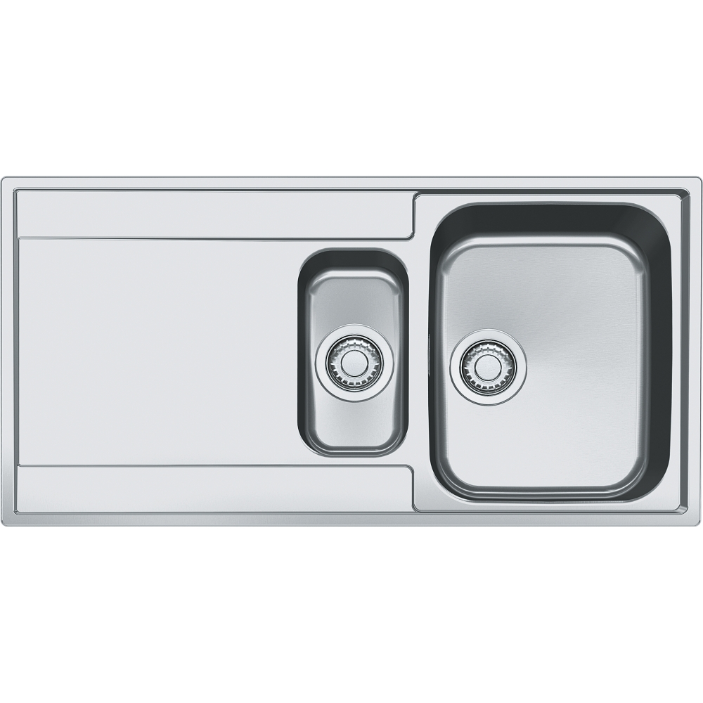 A 1.5 bowl inset stainless steel kitchen sink with drainer and a 50 Year Guarantee.