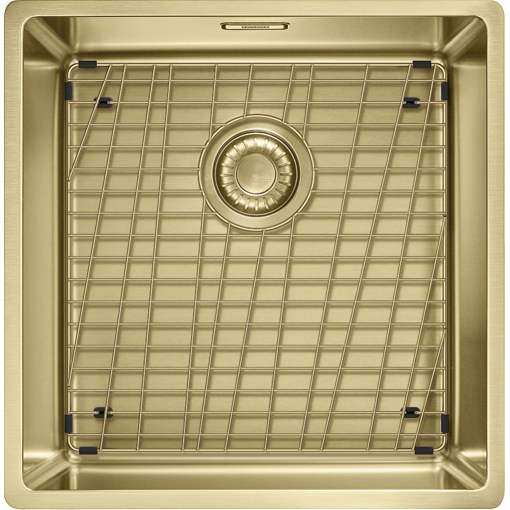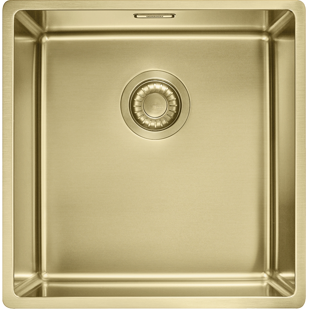 A premium single bowl stainless steel kitchen sink with Gold PVD coating, designed for slim-top, flushmount or undermount installation and backed by a 50 Year Guarantee.
